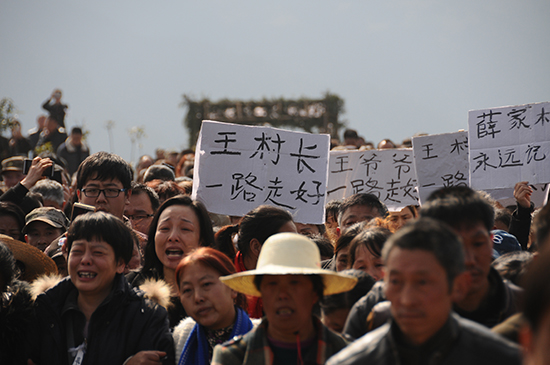 看到此情此景,王新法的弟弟王书生在现场对送殡的人们大声说:“我更加感受到了我大哥在你们心中的位置,更加感受到了你们对他的厚爱,所以我们做出把我大哥留在这里的决定,是对的。为此我想代表我的家人,把我大哥就交给你们了。我向你们跪拜了!”言毕,王书生长跪在地。